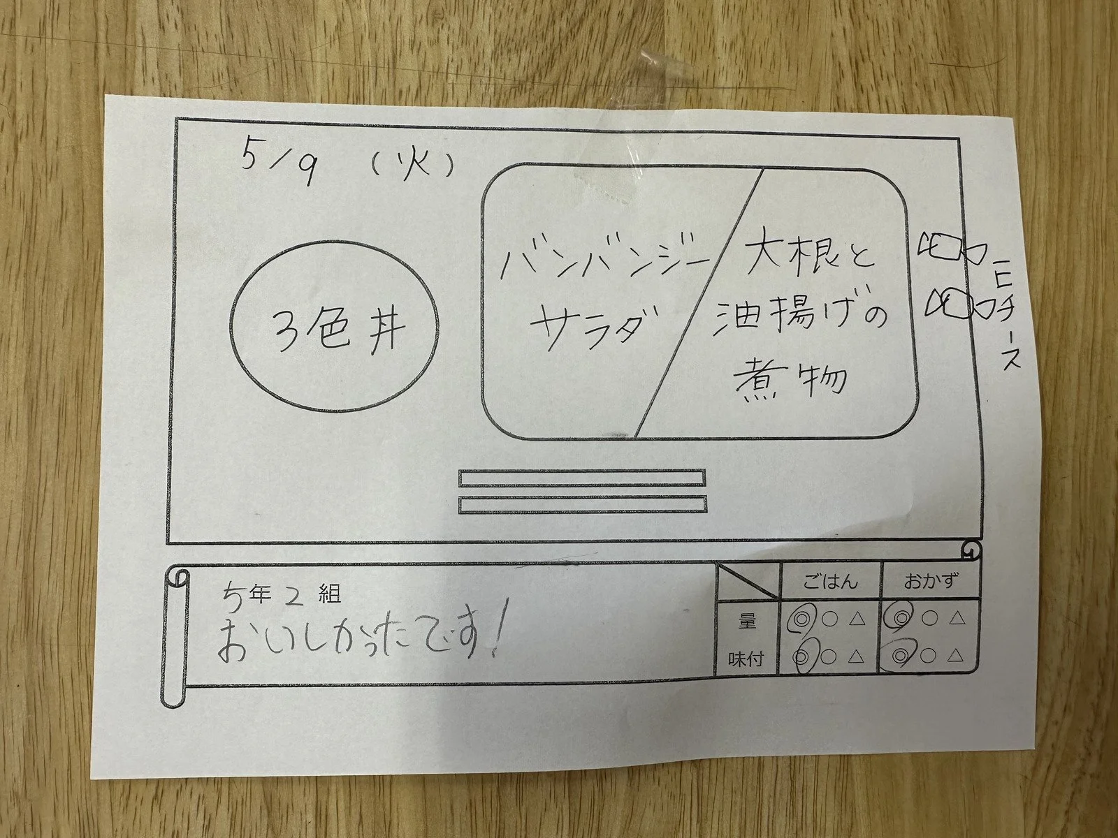 In Japan, Kyushoku (giving food) refers to school lunches served in elementary and junior high schools. It ensures that students eat a balanced diet regardless of their economic status. Students take turns serving teachers and classmates while wearing caps, smocks, and masks. They learn about teamwork, service, and responsibility at an early age. The students also create standard work forms as part of the lunch program. Students learn about hoshin (direction) and A3 (problem statement, analysis, proposed actions, and expected results) early.